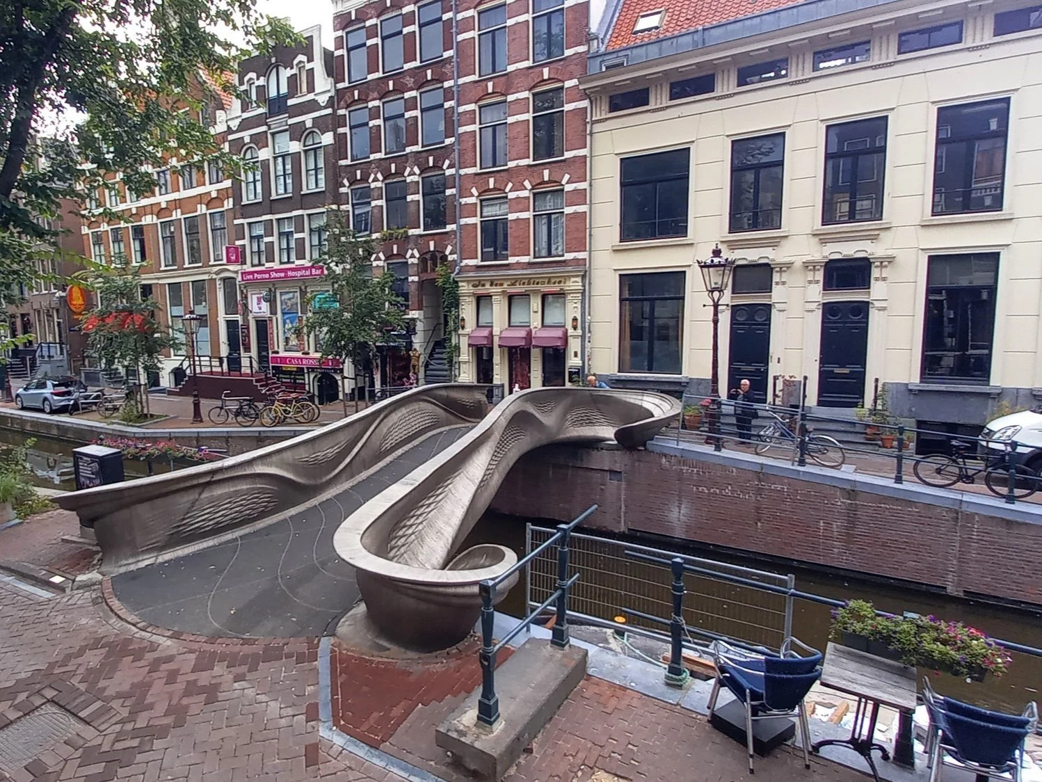 Venice isn’t the only city thick with canals and cool bridges. Following the successful installation of a 3D-printed concrete bridge for cyclists in 2017 in Gemert, the Netherlands, this summer the Dutch Queen Maxima teamed up with a small robot to unveil the world’s first 3D-printed steel bridge over one of Amsterdam’s oldest canals. The stainless-steel structure was welded by robots using a type of 3D printing technique developed by technology company MX3D. What’s more interesting, the eye-catching design by Dutch designer Joris Laarman is also embedded with smart sensors that measure real-time foot traffic and analyze how people use public spaces and how bridges wear down over time.